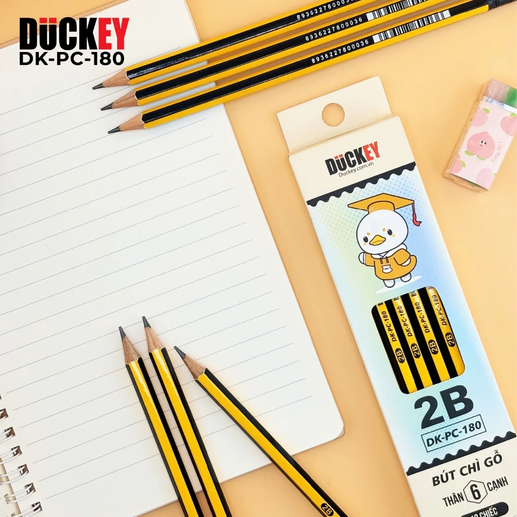 🎉 Bút Chì 2B DUCKEY DK-PC-180 – "Chiến hữu" học tập siêu xịn dành cho học sinh! 🐣✏️