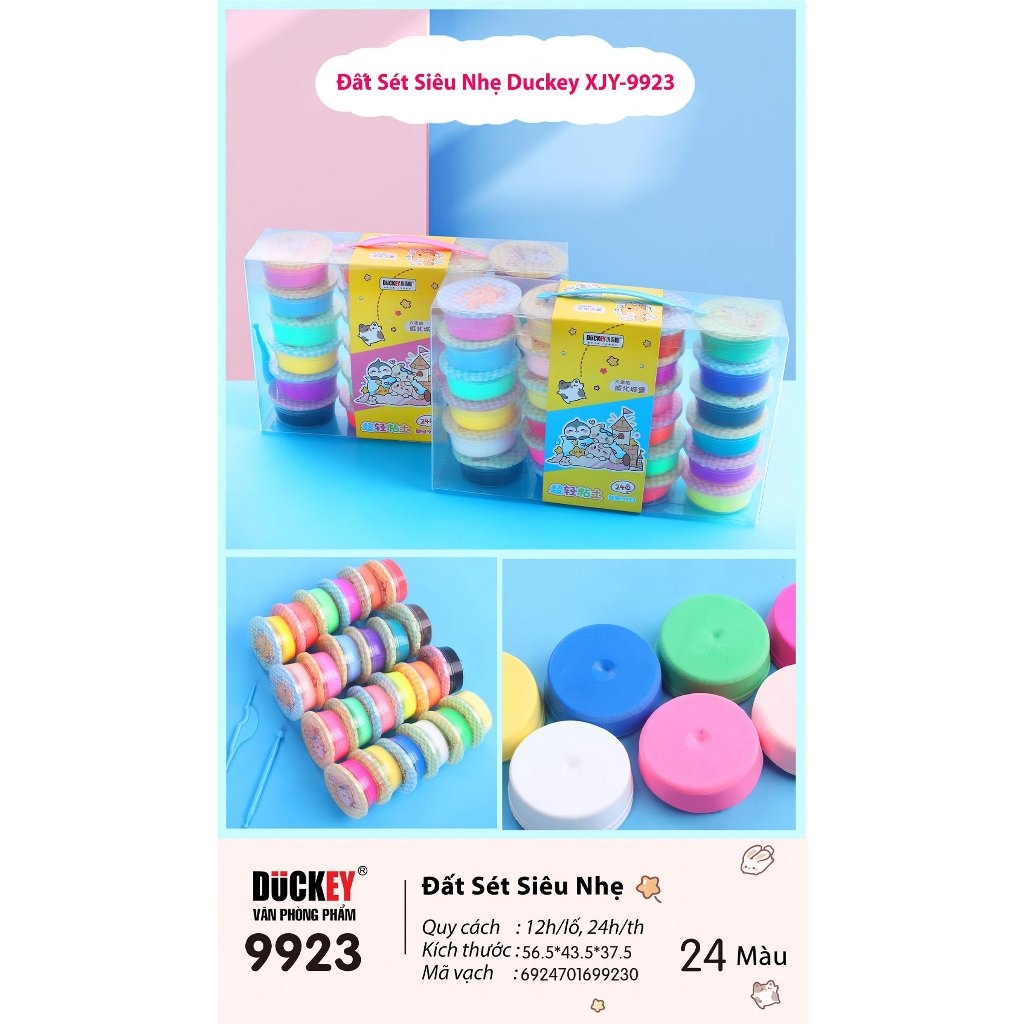 🎨 Đất Nặn Khô Siêu Nhẹ Light Clay DUCKEY XJY-9922 (12 Màu) – Thế Giới Sáng Tạo Trong Tầm Tay Bé! 🌟