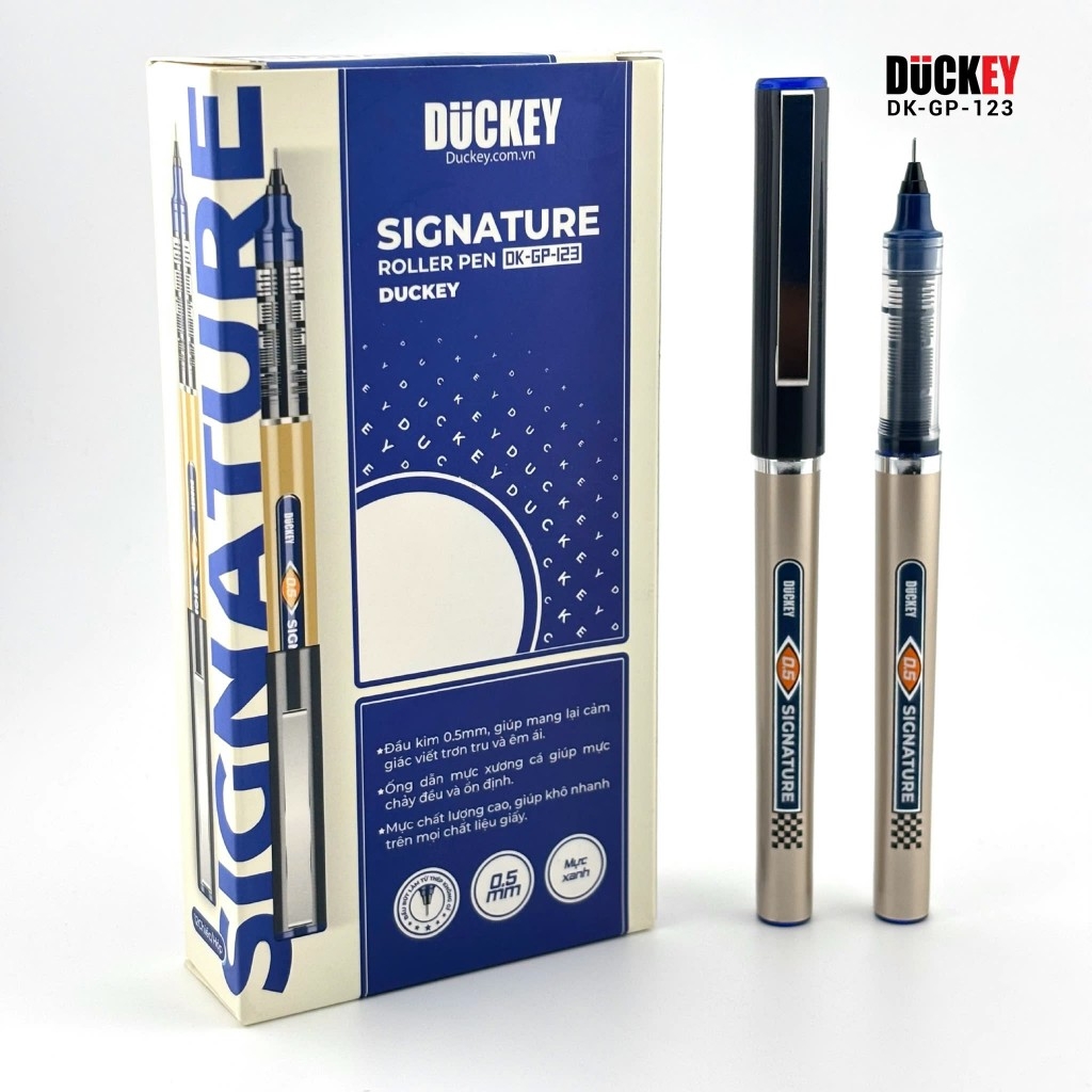 DUCKEY Signature DK-GP-123 là dòng bút kim cao cấp, được thiết kế để đáp ứng nhu cầu viết và ký tên hàng ngày của bạn một cách hoàn hảo. Với thiết kế hiện đại và sang trọng, sản phẩm này không chỉ là một công cụ viết mà còn là một phụ kiện thể hiện phong cách cá nhân.
